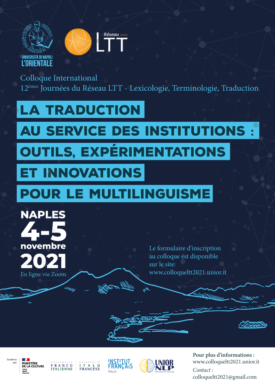 La traduzione al servizio delle istituzioni: strumenti, sperimentazioni e innovazioni per il multilinguismo”, dodicesime giornate del Réseau LTT - Lexicologie, Terminologie, Traduction